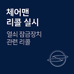 체어맨 열쇠 잠금장치 관련 리콜 차량관리 필수앱 마카롱 대상 차량 차종 제작 일자 체어맨 2001-11-01 ~ 2011-05-30 리콜 내용 주,정차상태에서 조향핸들 잠김을 풀기 위하여 반복적으로 열쇠와 핸들을 동시에 회전시킬 때, 일부 차량에서 열쇠 잠금장치 내부 부품의 파손으로 인해 조향핸들이 잠길 수 있는 가능성에 따른 리콜 시정방법개선된 열쇠 잠금장치 부품 교환 대상확인 080-500-5582 리콜 발표일2020-04-21 ~ 출처자동차 리콜센터 이제 '내 차 관리' 좀 해볼까? 친구에게 공유하기
