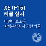 X6 (F16) 어린이 보호용 좌석부착장치 관련 리콜 차량관리 필수앱 마카롱 대상 차량 차종 제작 일자 X6 M 2014.11.07~2019.05.14X6 M50d 2014.01.08~2018.11.16X6 sDrive35i 2016.06.09 X6 xDrive28i 2017.07.22X6 xDrive30d 2014.07.07~2019.05.16 X6 xDrive35i 2015.06.19 X6 xDrive35i 2014.10.13~2018.06.11X6 xDrive40d 2014.11.26~2019.05.15 리콜 내용 어린이 보호용 좌석부착장치(ISOFIX) 브라켓의 강도 부족으로 어린이의 체중, 사용빈도, 도로조건 등 복합적 요인에 따라 드문 경우, 과도한 진동 스트레스로 인하여 어린이 보호용 좌석부..