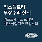익스플로러 리프트게이트 드레인 밸브 관련 무상수리 차량관리 필수앱 마이클 대상 차량 포드 코리아 차종 제작 일자 Explorer 2010-10-13 ~ 2017-09-29 무상수리 내용 차량의 후방 리프트게이트 드레인 밸브 및 에어컨디셔닝 시스템 프로그램 문제로 배출가스가 차량 실내에 유입될 가능성에 따른 무상수리 조치사항 대상 차량 확인 후, 무상으로 수리 진행 대상확인 1600-6003 무상수리기간2020-06-26 ~ 2023-07-31 출처www.car.go.kr (자동차 리콜센터) 기타문의서울(강북) 02-2216-1100 경기(분당) 031-701-7004 부산(수영) 051-758-0046 등 전국 포드 서비스센터 이제 '내 차 관리' 좀 해볼까? 친구에게 공유하기