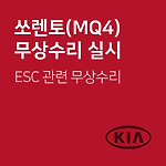 쏘렌토(MQ4) ESC 관련 무상수리 차량관리 필수앱 마이클 대상 차량 기아 자동차 차종 제작 일자 쏘렌토(MQ4)_R2.2 2020-02-26 ~ 2020-06-29 무상수리내용 주행 중 간헐적으로 ESC 경고등이 점등될 수 있는 가능성에 따른 무상수리 조치사항 ABS/VDC 소프트웨어 업그레이드 대상확인 080-200-2000 무상수리기간2020-07-03 ~ 2022-01-02 출처www.car.go.kr (자동차 리콜센터) 이제 '내 차 관리' 좀 해볼까? 친구에게 공유하기