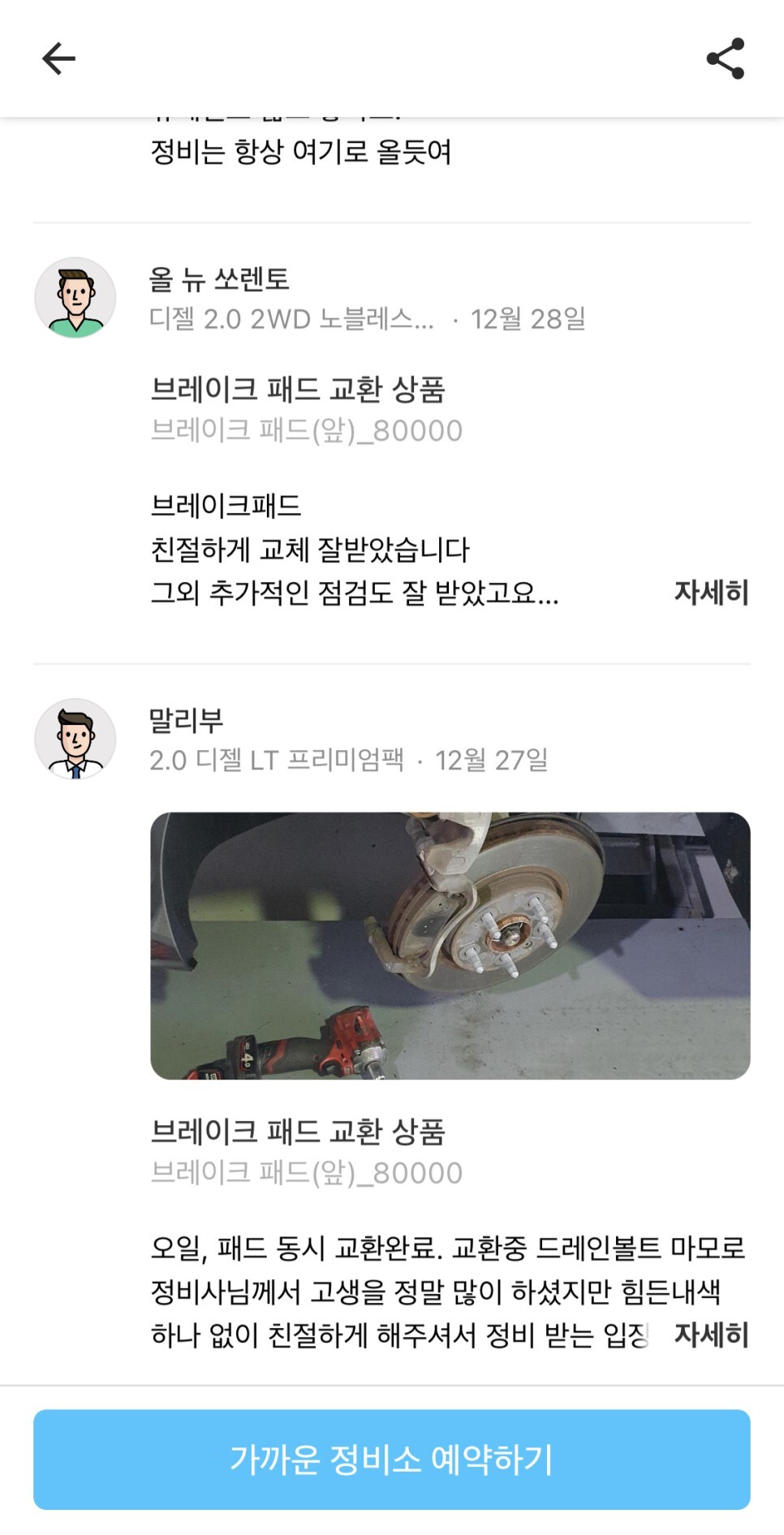 게다가 실제 정비소를 방문한 사람들의 리뷰도 볼 수 있어요!