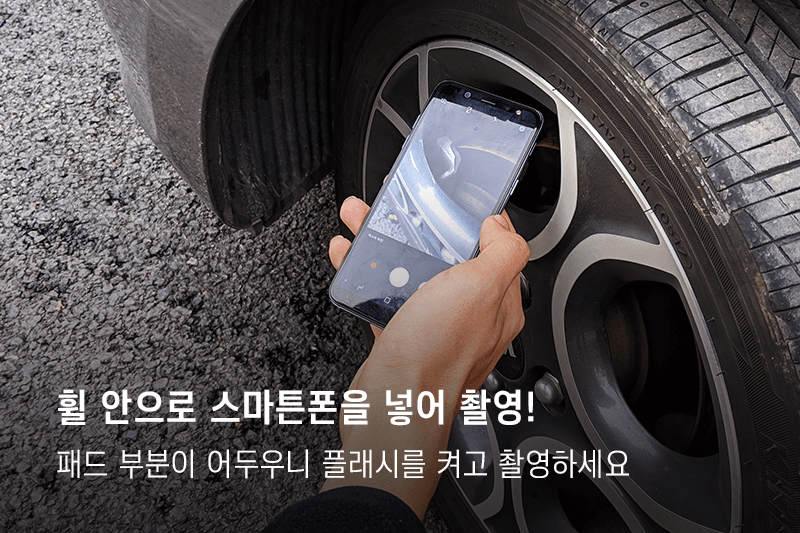 휠 사이로 고개를 집어넣고 확인하긴 힘들기 때문에 스마트 폰으로 사진을 찍어 확대하신 후 확인하는 게 좋습니다.