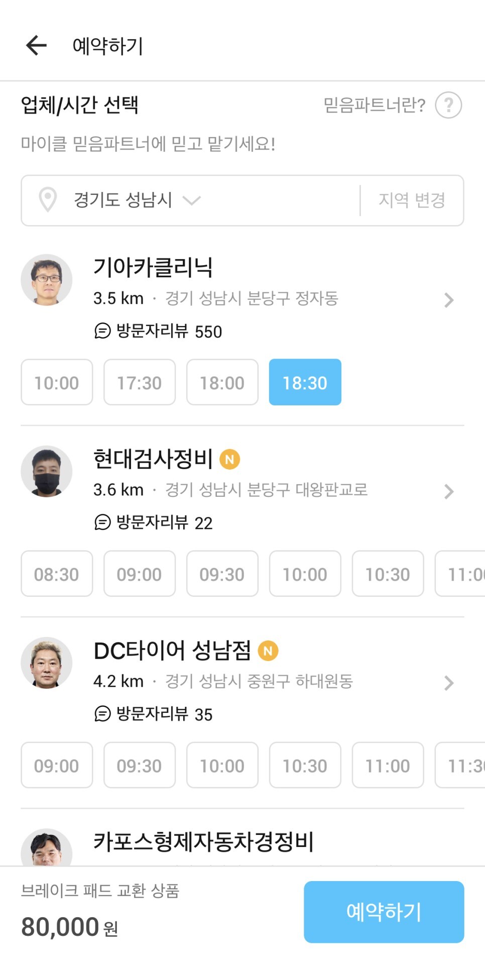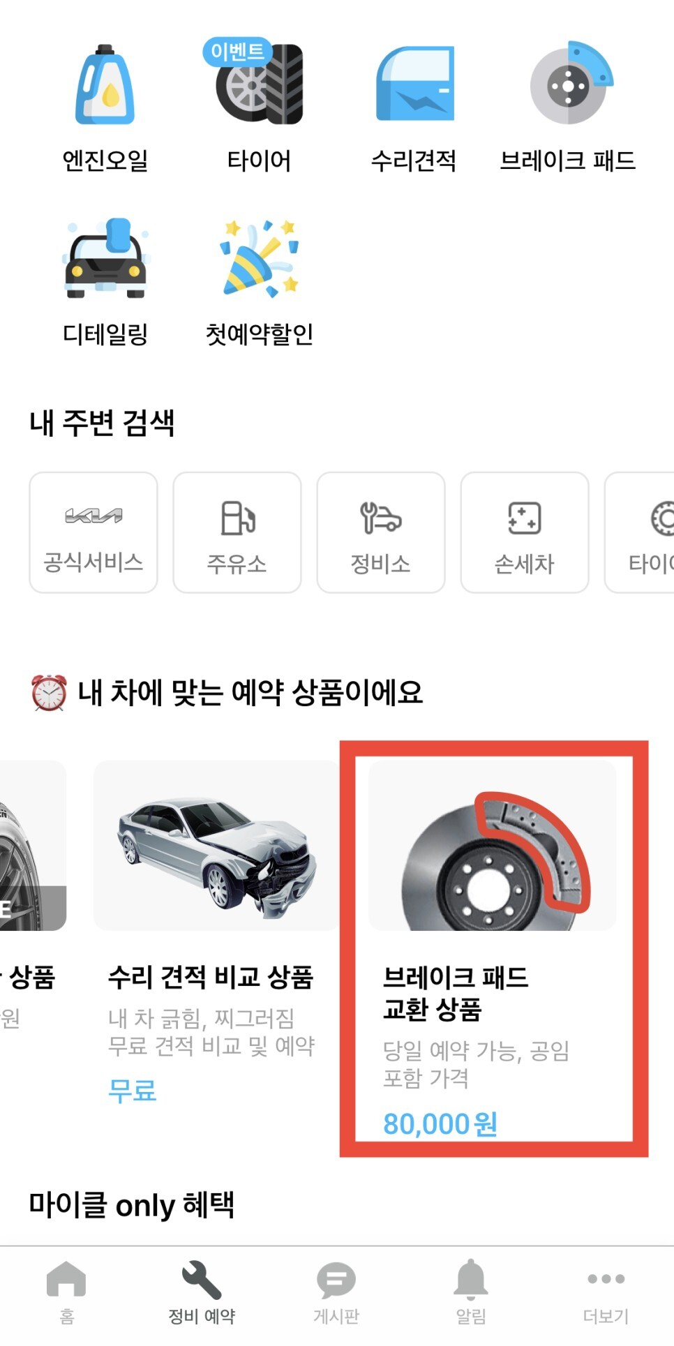 내 근처 정비소도 정확한 시간에 추가비용없이 미리 예약하고 가니까 안심하고 갈 수 있습니다!