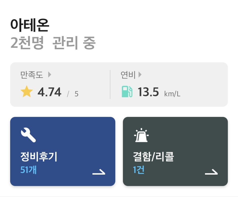 현재 차량관리앱 마이클을 통해 아테온을 관리하고 있는 운전자는 대략 2천명입니다.