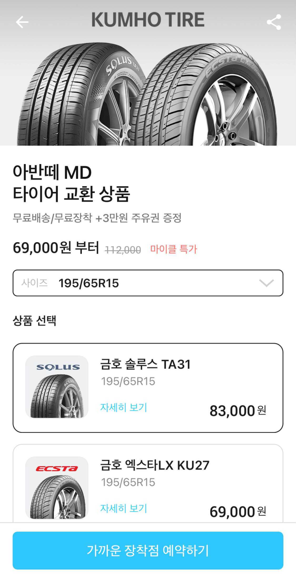 아래 배너를 클릭하시면 타이어 사이즈와 가격을 한 번에 알아보고, 가까운 장착점에 안심하고 예약할 수 있습니다.