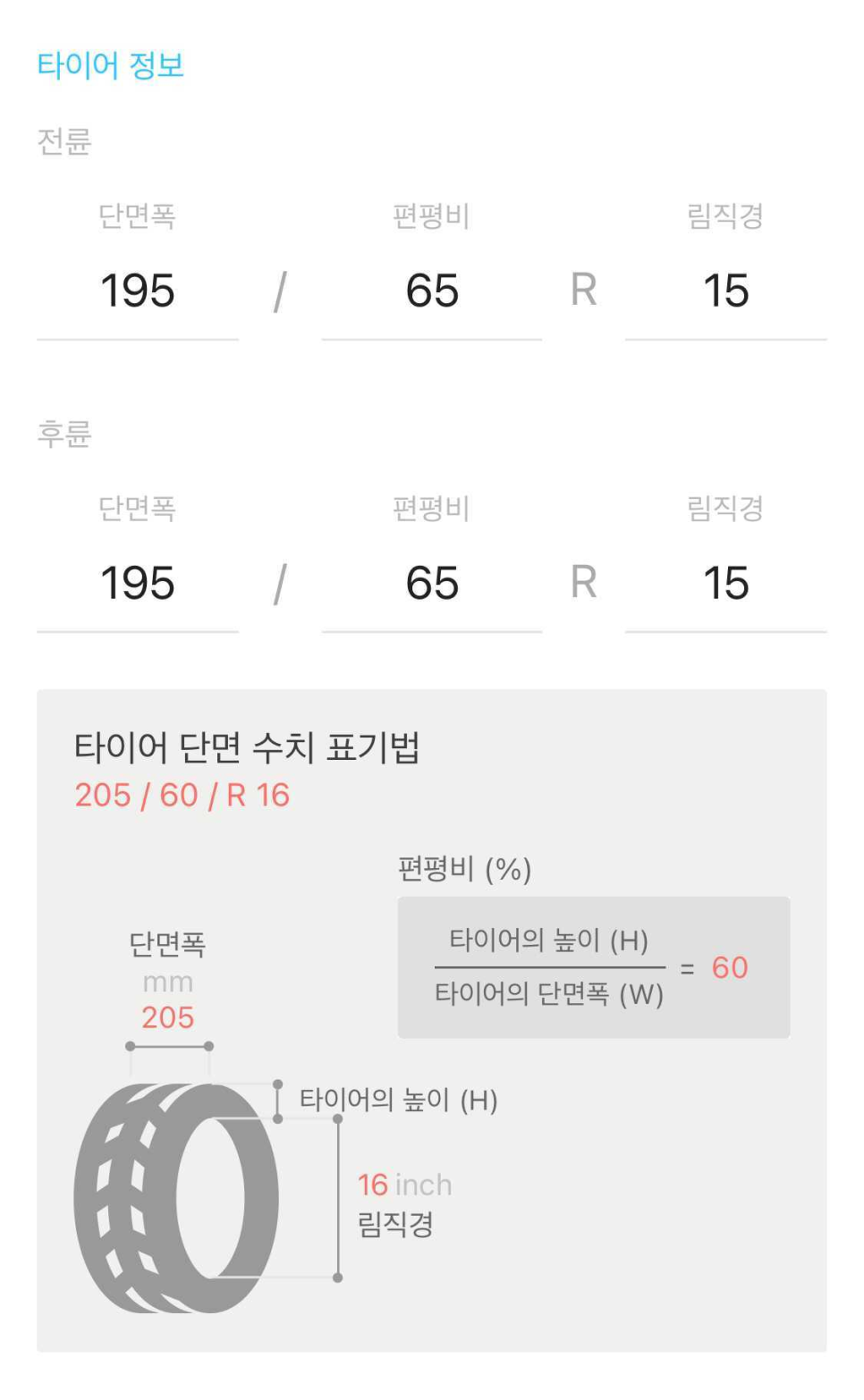 직접 찾아보지 않아도 내 차의 타이어 사이즈를 쉽게 알 수 있는데요.