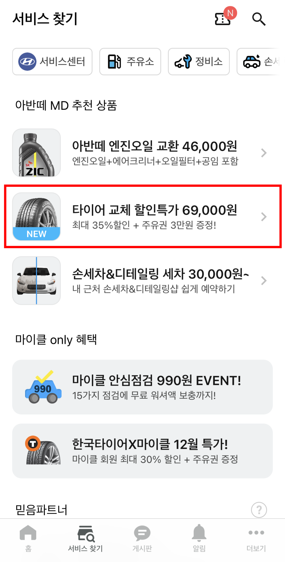 배너를 누르시면 타이어 상품과 가격을 자세히 보실 수 있습니다.
