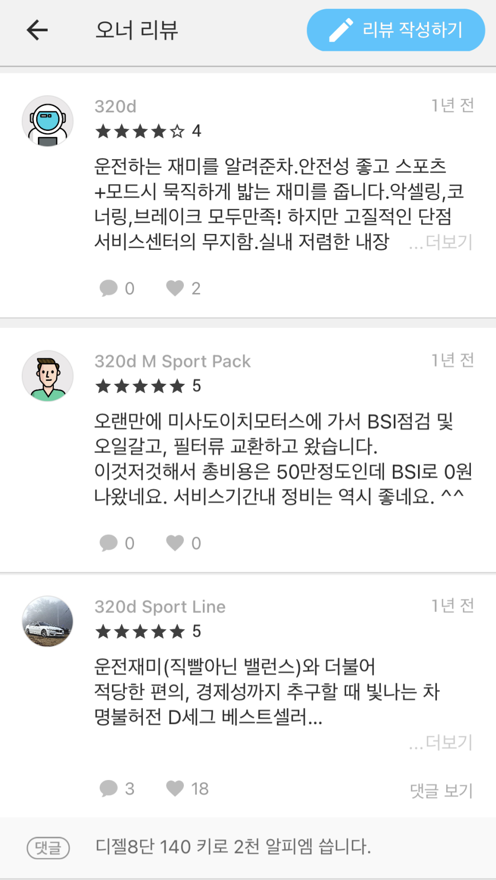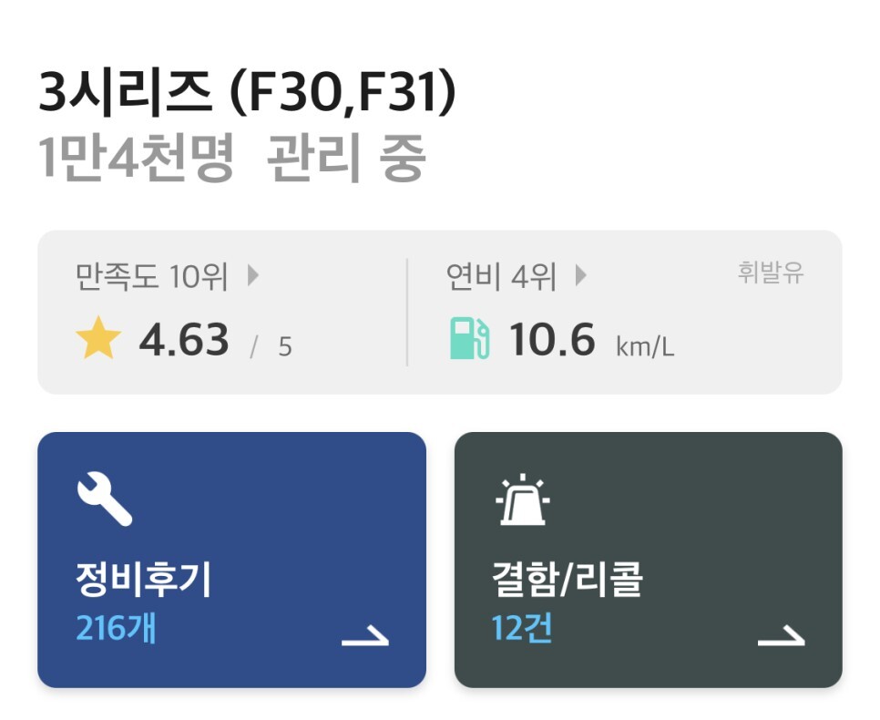 1만 4천명의 3시리즈 오너가 제공하는 실제 정보를 하나하나 살펴볼까요?