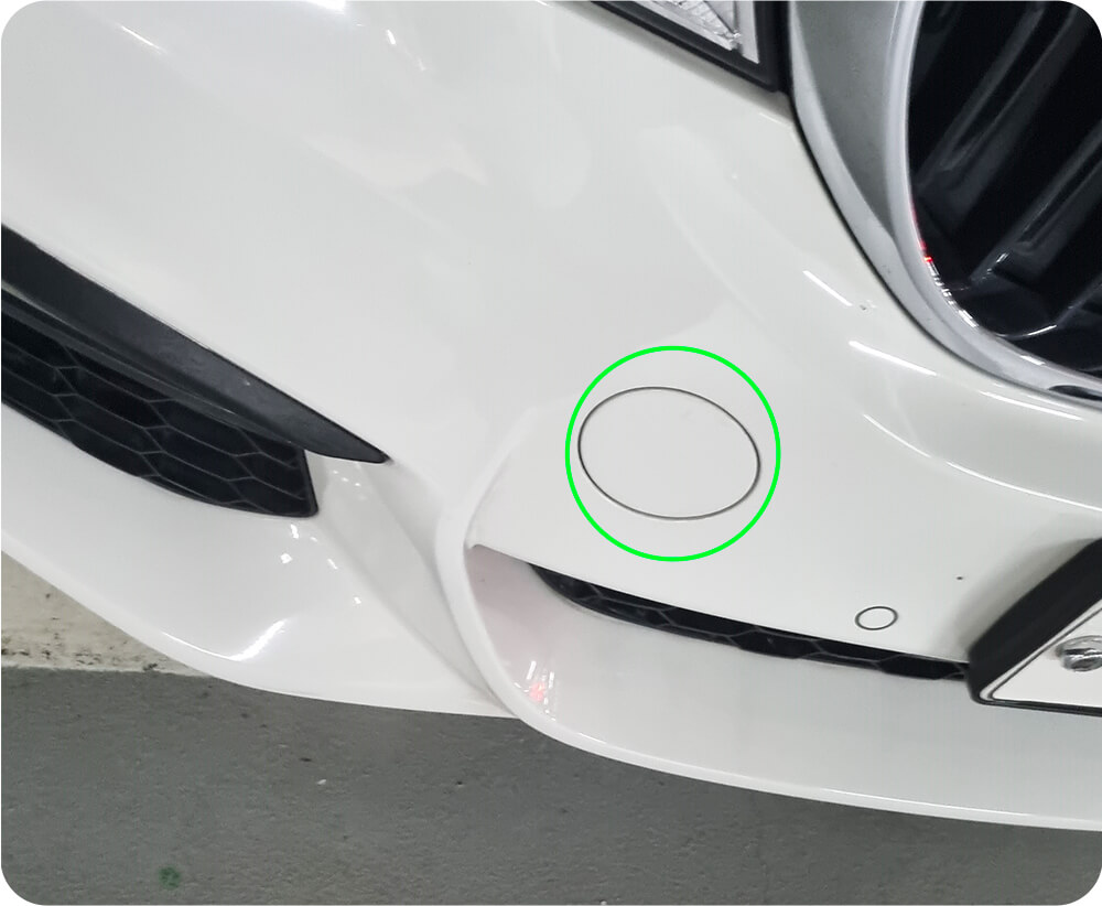 전방 견인 후크 장치를 사용할 때 여닫는 커버입니다. 사고가 나거나 차를 움직일 수 없는 비상 상황 시 커버를 열어 토잉 후크를 연결해 견인을 용이하게 하기 위한 장치 입니다.