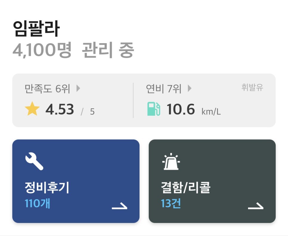 현재 차량관리앱 마이클을 통해 임팔라를 관리하고 있는 운전자는 대략 4천명입니다.