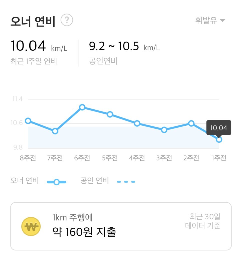 마이클을 이용하는 실제 임팔라 오너들의 연비는 최근 30일 기준 14.01km/L로 1Km 주행에 약 160원을 지출하는 것으로 나타났습니다.