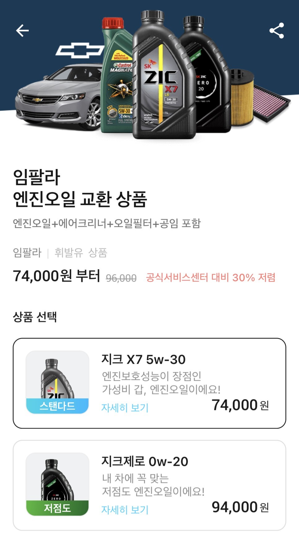 2. 임팔라 엔진오일 교환비용