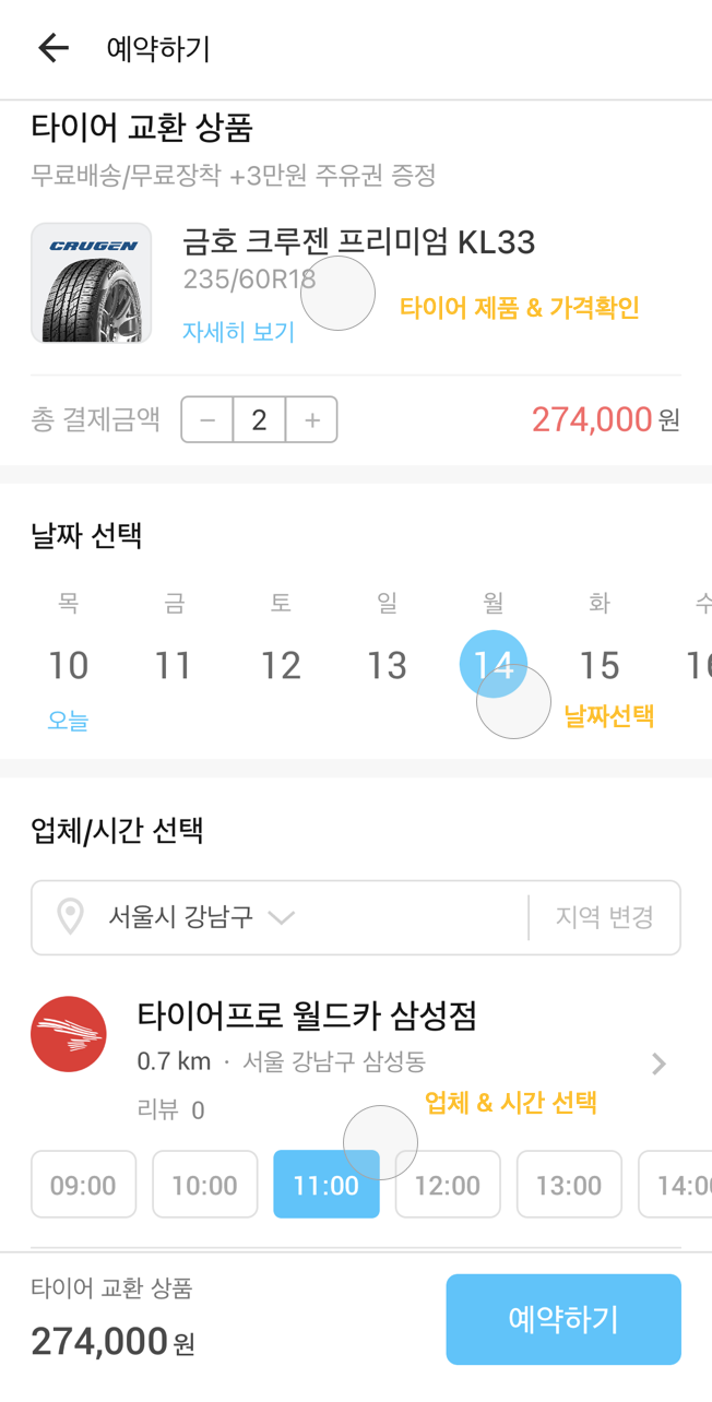 가까운 장착점에 안심하고 예약할 수 있습니다.