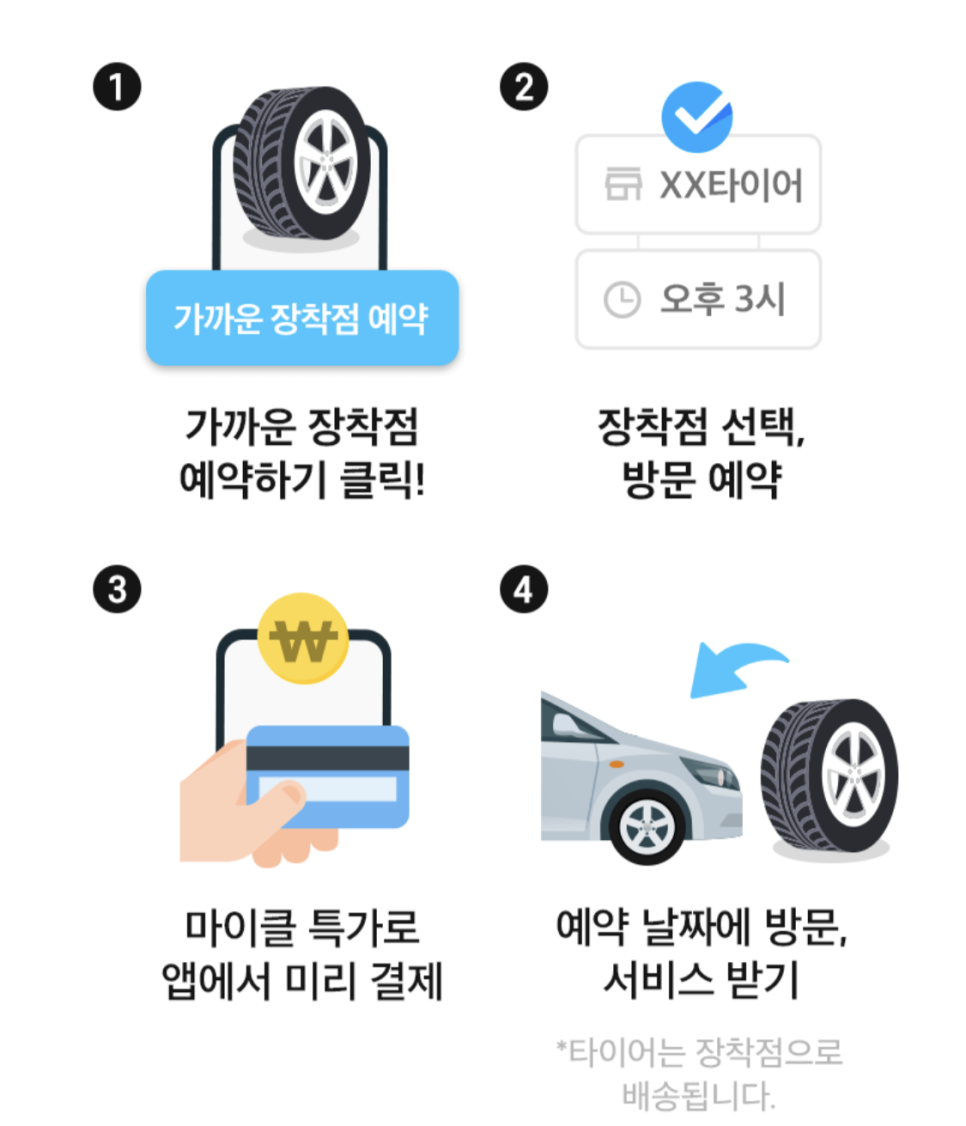 타이어도 장착점에 미리 무료로 배송되어 있기 때문에 '방문'만 하시면 된답니다.