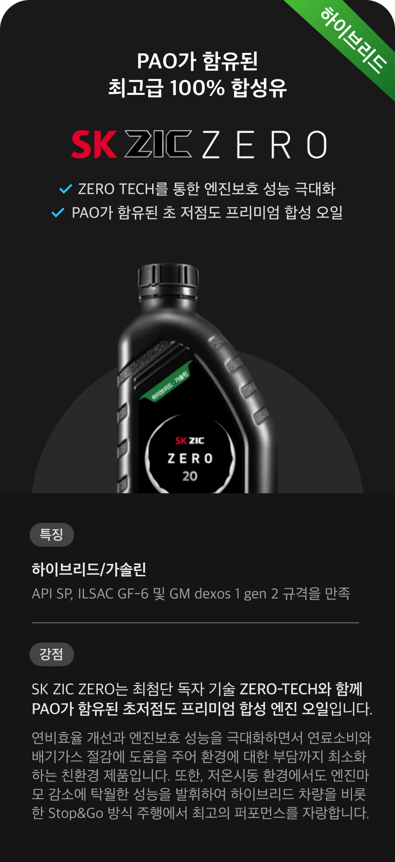 하이브리드 전용, 저점도 엔진오일 지크제로도 선택하실 수 있습니다.