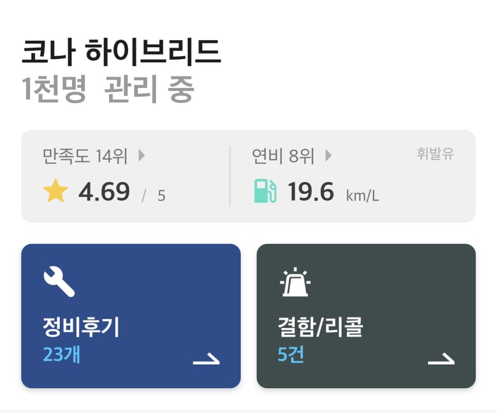 1천명의 코나 하이브리드오너가 제공하는 실제 정보를 하나하나 살펴볼까요?