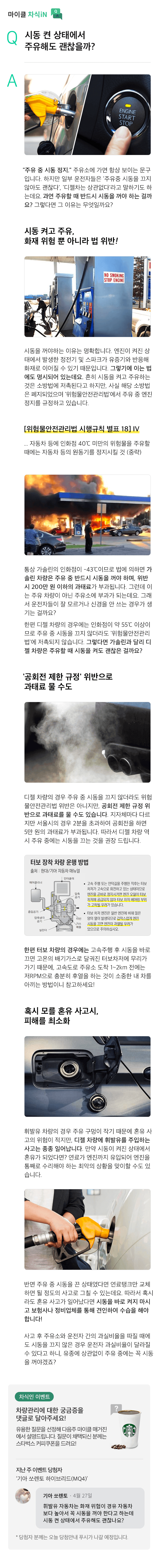 5월 1주 마이클 매거진, 시동 켠 상태에서 주유해도 괜찮을까? 본문