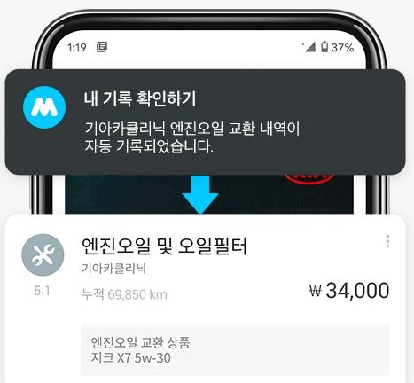 브레이크패드만 교환하고 끝~이면 차량관리 어플이 아니죠! 마이클을 통해서 브레이크패드를 교체하셨다면 알아서 정비내역이 기록되고, 해당 기록을 기준으로 다음 교체시기가 도래하면 자동으로 알림이 떠요!