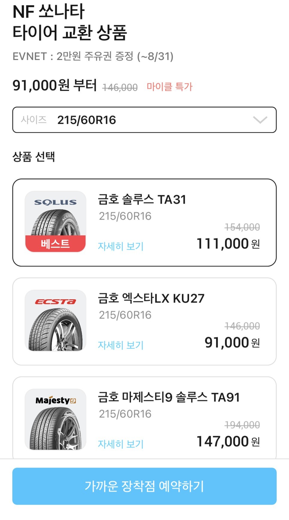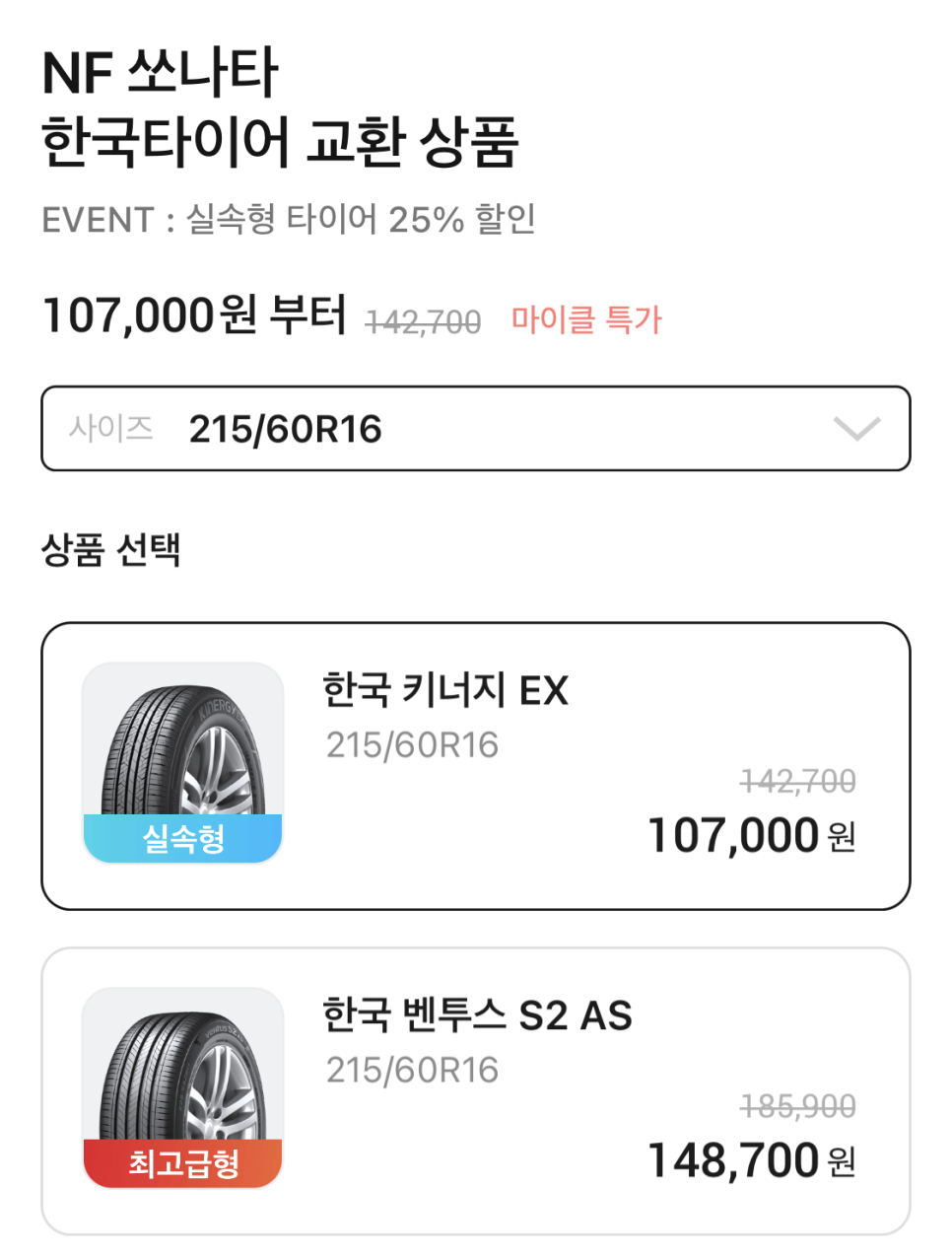 NF소나타 타이어 사이즈를 알아보았다면 이제 타이어 가격을 알아볼까요?