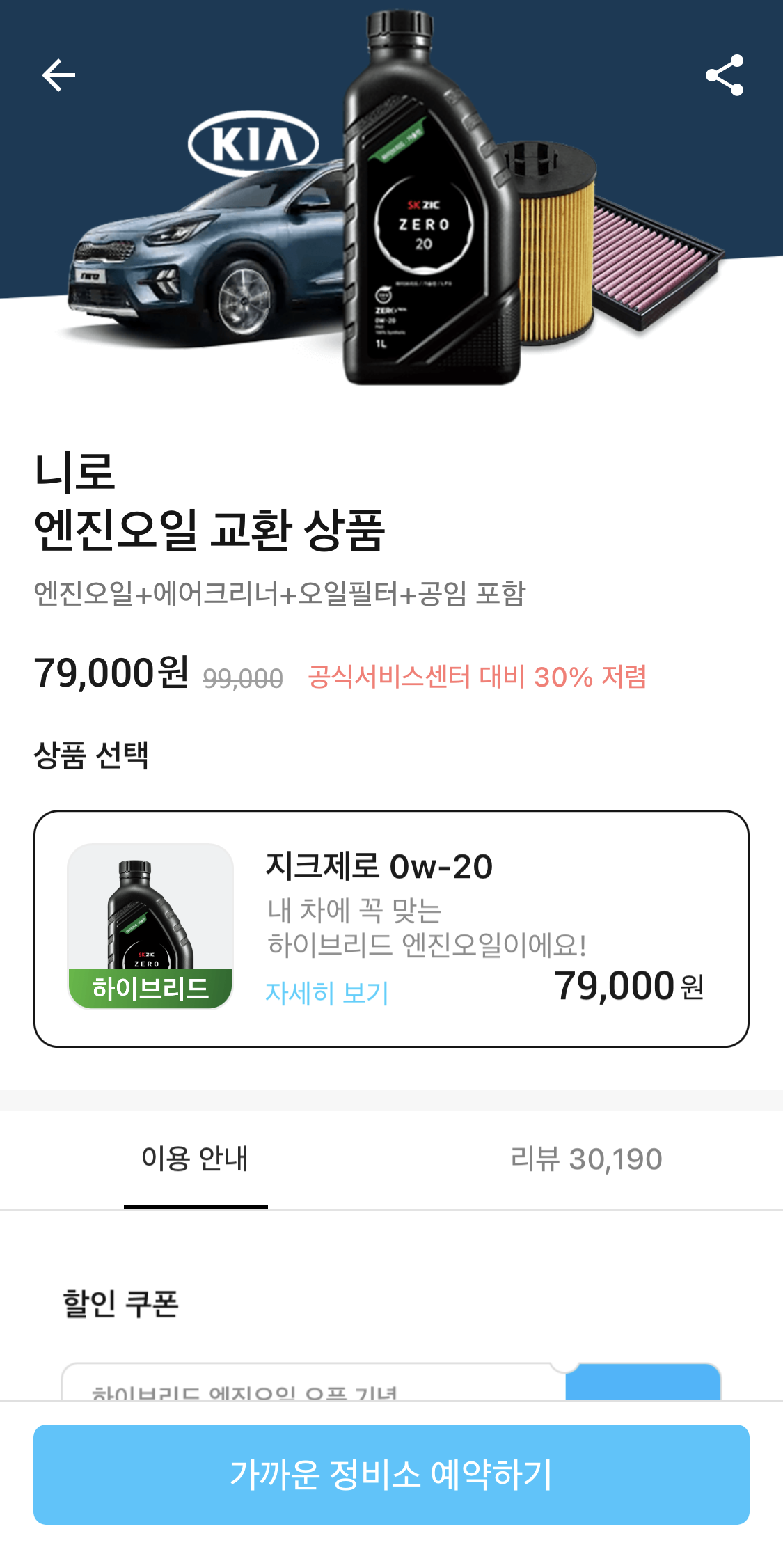 2. 니로 엔진오일 교환가격 (in 마이클)