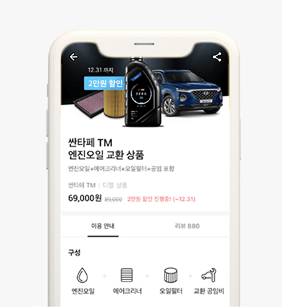 엔진오일 +에어크리너+오일필터 +교환 공임비 포함한 깔끔한 특가는 오직 마이클 앱에서만 제공하고 있어요.