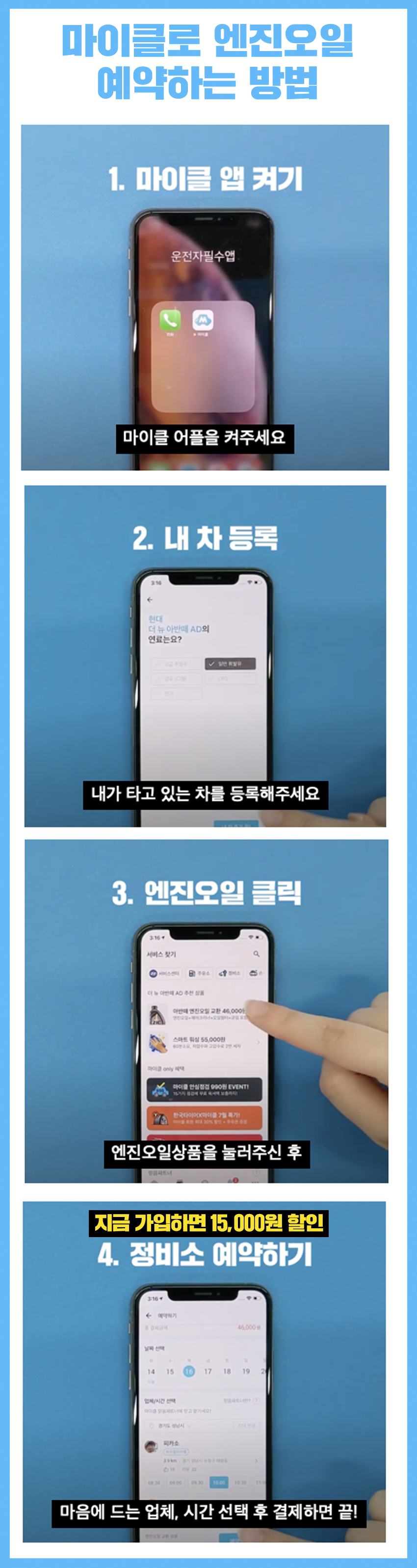 안녕하세요. 대한민국 1등 차량관리앱 마이클입니다.