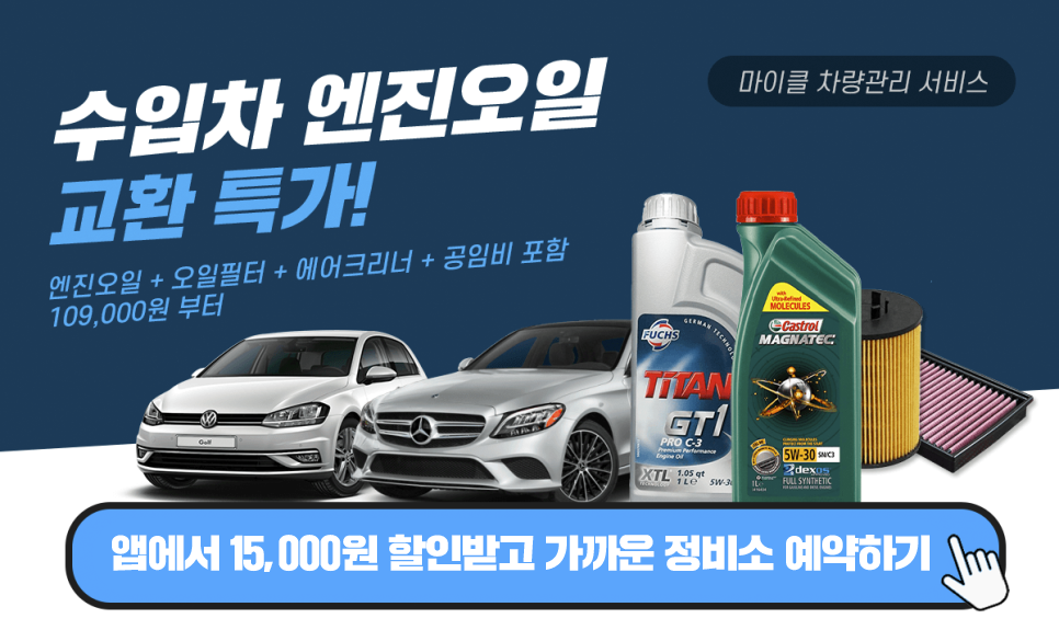 엔진오일 +에어크리너+오일필터 +교환 공임비 포함한 깔끔한 특가는 오직 마이클 앱에서만 제공하고 있어요.