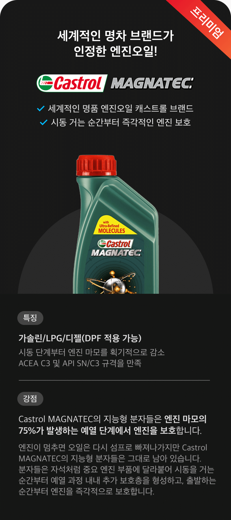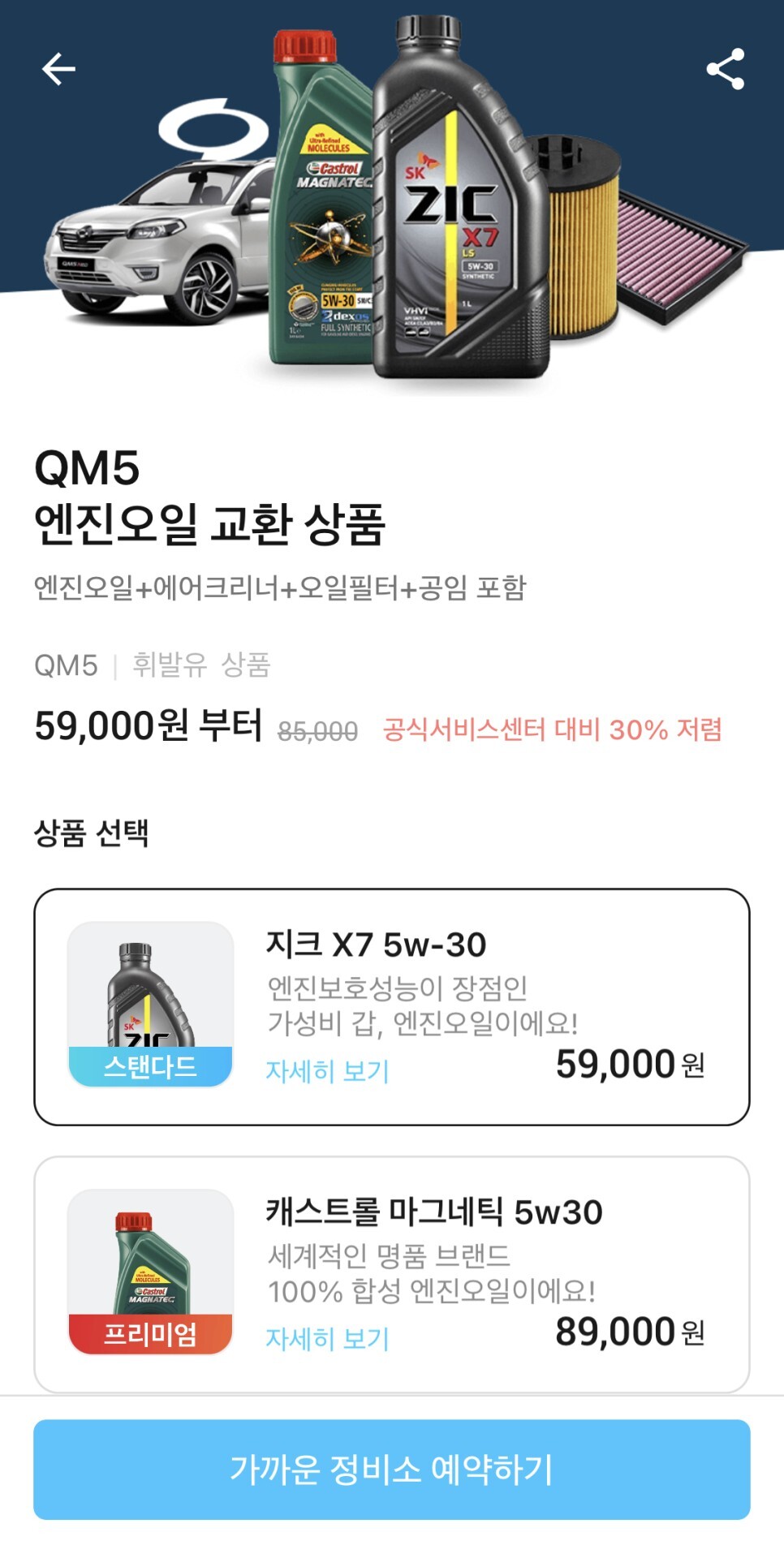프리미엄 엔진오일, 캐스트롤 엔진오일도 제공하고 있으니, 원하시는 엔진오일을 선택하실 수 있어요!