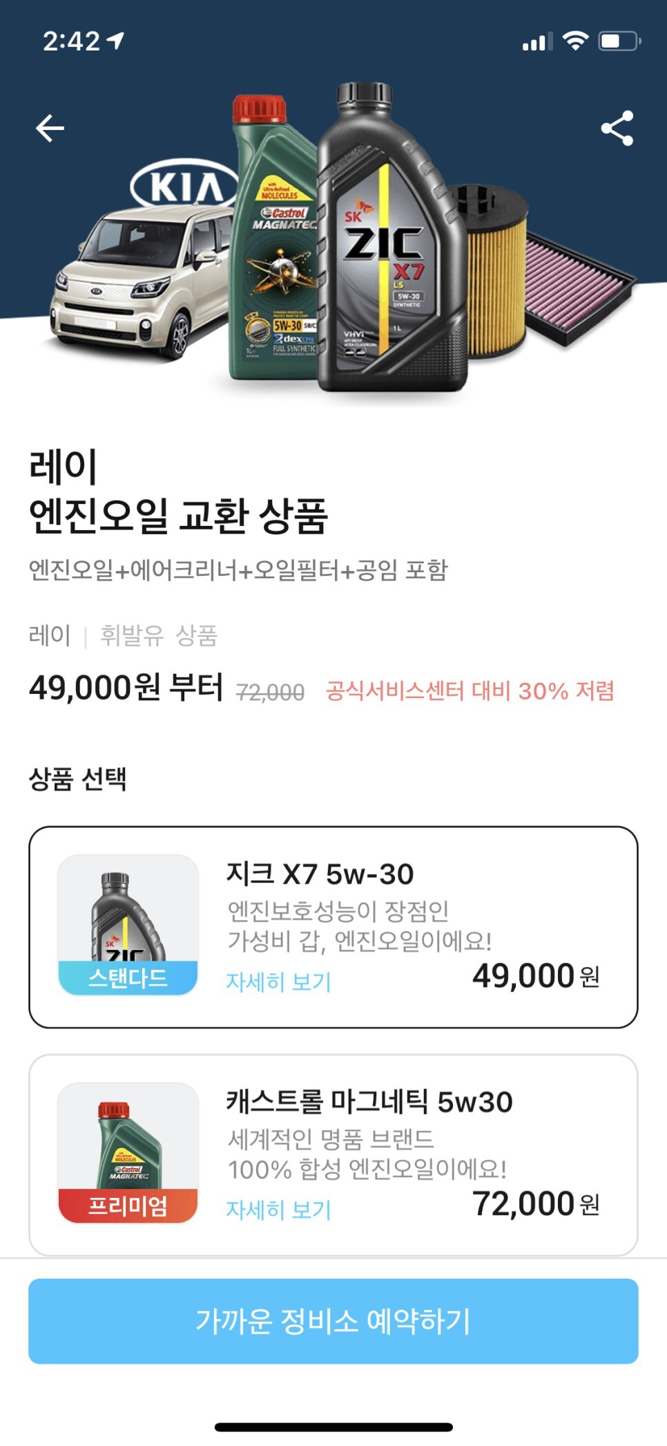 2. 레이 엔진오일 교환가격 (in 마이클)