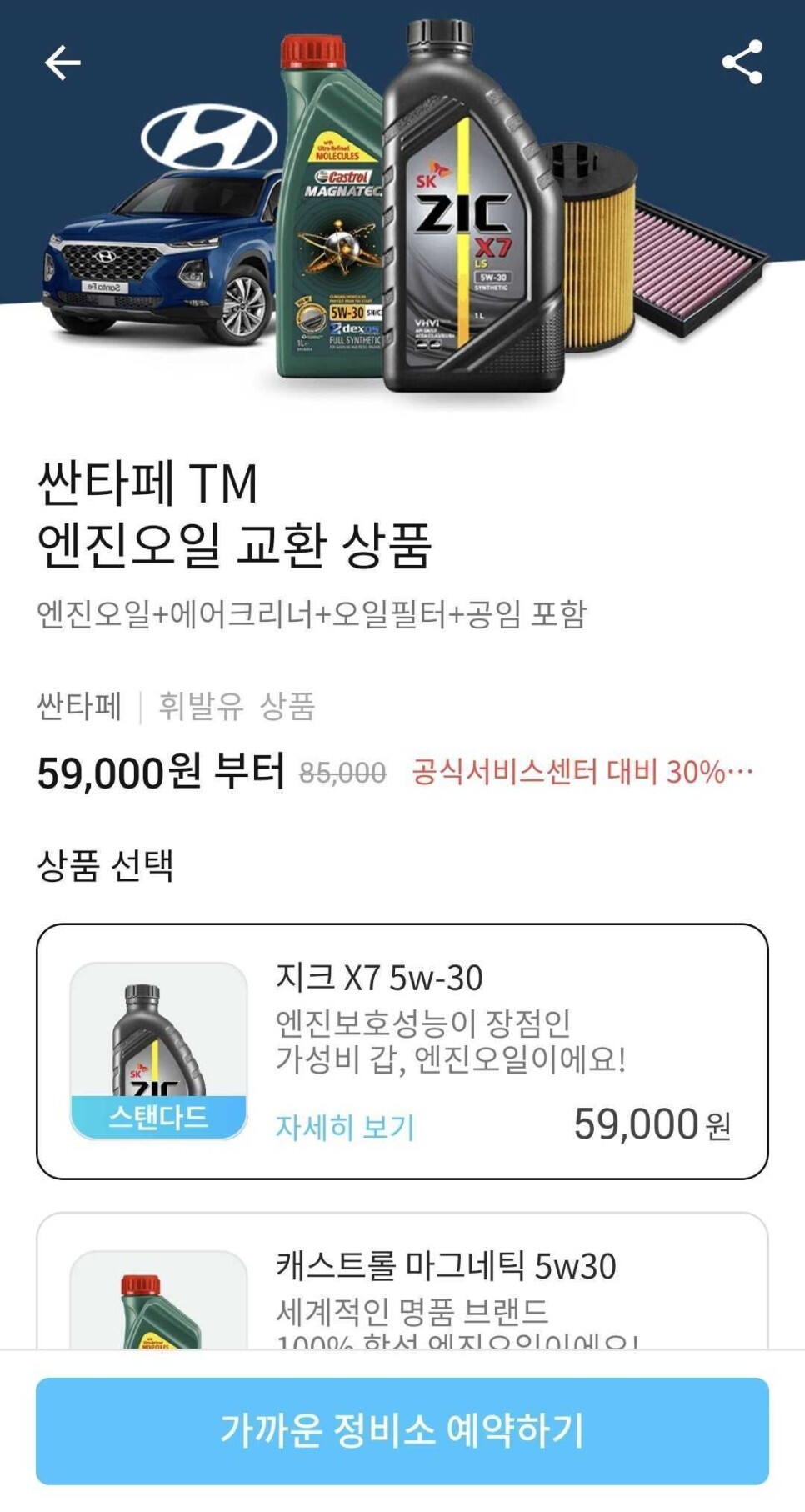 마이클에서는 그런 걱정할 필요없이 마이클과 함께하는 정비소는 모두 싼타페TM 엔진오일 교환가격을 59,000원에 제공하고 있습니다.