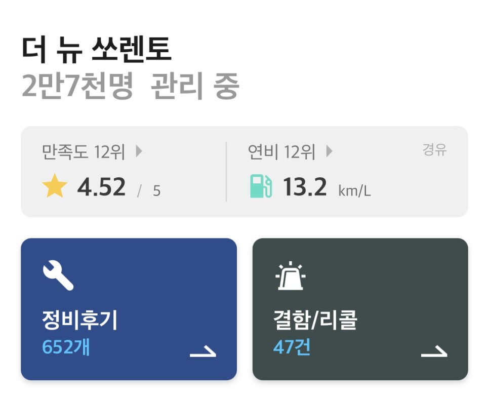 2만 7천명의 더 뉴 쏘렌토 오너가 제공하는 실제 정보를 하나하나 살펴볼까요?