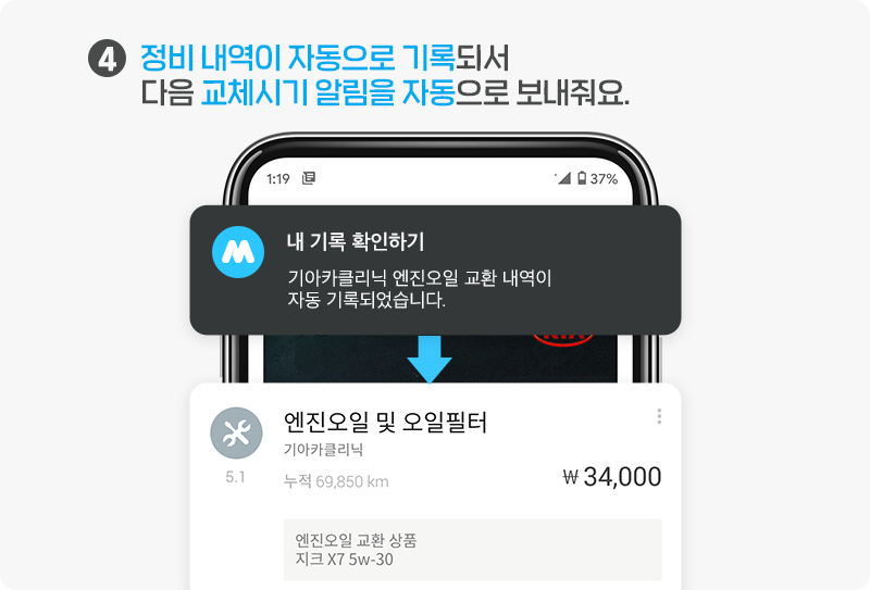 4.정비 내역이 자동으로 기록되서 다음교체시기 알림을 자동으로 보내줘요.
