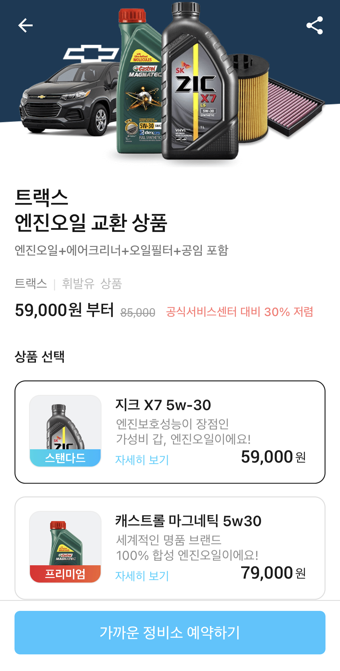 마이클에서는 그런 걱정할 필요없이 마이클과 함께하는 정비소는 모두 트랙스 엔진오일 교환가격을 59,000원에 제공하고 있습니다.