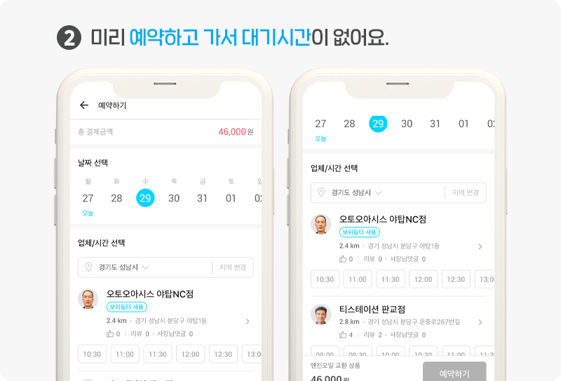 앱에서 미리 예약했기 때문에 정비소에 도착하면 대기시간 없이 서비스를 받을 수 있고,