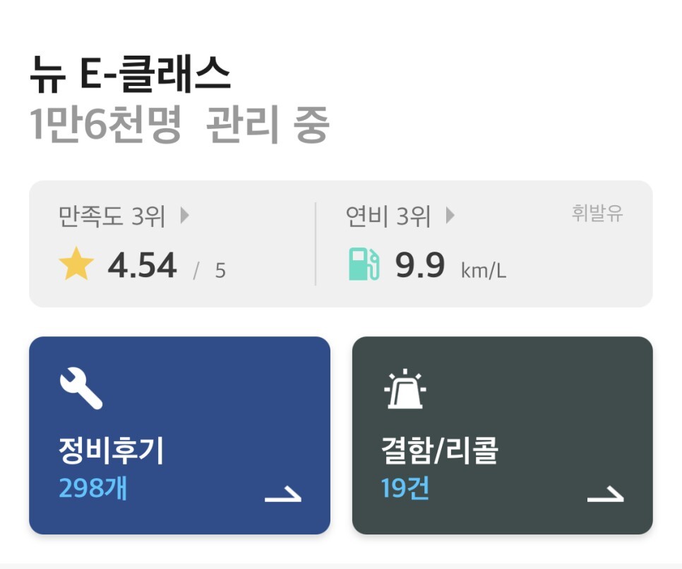 현재 차량관리앱 마이클을 통해 E클래스를 관리하고 있는 운전자는 대략 1만 6천명입니다.
