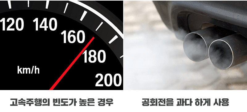 하지만 도심운전 위주의 짧은 거리 반복 주행, 교통 체증이 심한 곳을 주행 등 가혹 조건에 해당한다면 7,500km마다 또는 6개월에 한번 교환하는 것을 추천해드리고 있습니다.