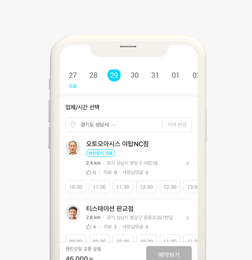 앱에서 미리 예약했기 때문에 정비소에 도착하면 대기시간 없이 서비스를 받을 수 있고,