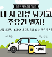 | 내 차 리뷰 작성하면 마카롱이 1만원 주유 쿠폰을 쏜다! (0) | 2018.03.14 |