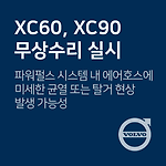 XC60, XC90 파워펄스 호스 관련 무상수리 차량관리 필수앱 마카롱 대상 차량 기아 자동차 차종 제작 일자 XC60, XC90 '16.04.21. ~ '19.04.08. 리콜 내용 D5 일부 차량에서 파워펄스 시스템 내 에어호스에 미세한 균열이나 탈거 현상이 발생할 수 있는 가능성에 따른 무상수리*대상차량별 생산일자는 상이할 수 있으므로 자세한 사항은 제작사 고객센터로 문의주시기 바랍니다. 조치사항 새로운 파워펄스 에어호스 부품으로 교체 대상확인 02-1588-1777 무상수리기간2019년 7월 1일~ 출처www.car.go.kr (자동차 리콜센터) 이제 '내 차 관리' 좀 해볼까? 친구에게 공유하기