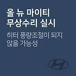 올 뉴 마이티 히터 풍량스위치 관련 무상수리 차량관리 필수앱 마카롱 대상 차량 기아 자동차 차종 제작 일자 올 뉴 마이티 '15.04.01. ~ '19.02.20. 리콜 내용 일부 차량에서 히터 풍량조절이 되지 않는 가능성이 발견됨에 따른 무상수리 시정 방법 히터 풍량스위치 교환 문의 080-600-6000 무상수리기간2019년 6월 7일~ 출처www.car.go.kr (자동차 리콜센터) 이제 '내 차 관리' 좀 해볼까? 친구에게 공유하기