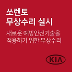 쏘렌토(2.0T-GDI) ECU 및 예방안전기술 관련 무상수리 차량관리 필수앱 마카롱 대상 차량 기아 자동차 차종 제작 일자 쏘렌토(UM) 2.0T-GDI 2017.02.07~2018.04.18. 무상수리 내용 차량의 엔진 진동을 감지하여 차량의 이상 유무를 진단하는 예방안전기술(KSDS)을 개발함에 따른 무상수리 조치사항 전자제어장치 KSDS 신규로직 적용 업그레이드 대상확인 080-200-2000 무상수리기간2019년 02월 15일 ~ 2020년 02월 15일 출처자동차 리콜센터 이제 '내 차 관리' 좀 해볼까? 친구에게 공유하기