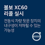XC60 전동식 차량 뒷문 지지대 관련 리콜 차량관리 필수앱 마카롱 대상 차량 기아 자동차 차종 제작 일자 XC60 '17.01.12. ~ '18.10.26. 리콜 내용 전동식 차량 뒷문(테일게이트) 장치의 내구성이 저하될 수 있는 가능성 영하의 날씨에서 전동식 차량 뒷문 지지대(테일게이트 리프팅 암)의 플라스틱 커버 내외측 사이에 반복적인 착빙 현상으로 바깥쪽 튜브의 고정장치가 파손되어 플라스틱 커버가 분리되는 경우, 전동식 차량 뒷문(테일게이트) 장치의 전체적인 내구성이 저히될 수 있는 가능성에 따른 리콜 시정방법 플라스틱에서 알루미늄 재질 커버로 개선된 전동식 차량 뒷문 지지대(테일게이트 리프팅 암)로 교체 대상확인 02-1588-1777 시정기간2019년 2월 28일~ 출처www.car.go.kr..
