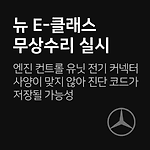 벤츠 뉴 E-클래스 엔진 컨트롤 커넥터 관련 무상수리 차량관리 필수앱 마카롱 대상 차량 차종 제작 일자 E 350d '18-01-05 ~ '19-10-17 무상수리 내용 엔진 컨트롤 유닛 전기 커넥터가 사양에 맞지 않아 컨트롤 유닛에 다양한 진단 코드가 저장될 수 있는 가능성에 따른 무상수리 조치사항 엔진 컨트롤 유닛 전기 커넥터를 재작업 대상확인 080-001-1886 무상수리기간2019월10년04일~ 출처자동차 리콜센터 이제 '내 차 관리' 좀 해볼까? 친구에게 공유하기