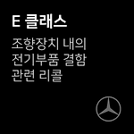 벤츠 E 클래스 조향장치 내 전기부품 결함 관련 리콜 차량관리 필수앱 마카롱 대상 차량 차종 제작 일자 E 200 Coupe '13.05.08.~'16.11.28. E 350 Coupe '13.02.04~'14.07.07. E 400 Coupe '14.06.27.~'16.03.15. E 200 Cabriolet '13.06.11~'16.12.05. E 350 Cabriolet '13.03.21.~'14.06.19. E 400 Cabriolet '14.06.27.~'16.04.13. E 220 BlueTEC '14.11.18.~'15.12.11. E 220 CDI '12.10.01.~'15.05.21. E 200 '13.07.02.~'15.06.13. E 300 '12.08.22.~'15.10.29. E ..