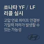 쏘나타 (YF/LF) 고압 연료 파이프 관련 리콜 차량관리 필수앱 마카롱 대상 차량 기아 자동차 차종 제작 일자 쏘나타 (YF/LF)'13.09.03.∼'17.09.18. 리콜 내용 고압 연료 파이프 연결부 기밀력 저하 엔진 교환 작업 중 고압 연료 파이프를 고압펌프에 장착 시 일부 차량 고압 연료 파이프 연결부 기밀력 저하가 발생할 수 있는 가능성에 따른 리콜 조치사항 고압 연료 파이프 체결부 누유 점검 후 필요 시 고압 연료 파이프 교환 문의 080-600-6000 발표일2019년 2월 15일 출처www.car.go.kr (자동차 리콜센터) 이제 '내 차 관리' 좀 해볼까? 친구에게 공유하기