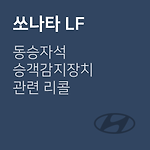 쏘나타 LF 동승자석 승객감지장치 관련 리콜 차량관리 필수앱 마카롱 대상 차량 기아 자동차 차종 제작 일자 쏘나타 LF '18.03.14.∼'18.06.22. 리콜 내용 동승자석 승객감지장치의 프로그램 오류 동승자석 승객감지장치의 프로그램 오류로 동승자석에 유아용 카시트를 장착하더라도 성인이 탑승한 것으로 잘못 인식하여 사고 발생 시 에어백이 전개되어 탑승한 유아가 다칠 가능성 문의 080-600-6000 발표일2018년 7월 24일 출처국토교통부 이제 '내 차 관리' 좀 해볼까? 친구에게 공유하기