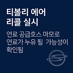 티볼리에어 연료 공급 호스 관련 리콜 차량관리 필수앱 마카롱 대상 차량 차종 제작 일자 티볼리 에어 디젤 '15.07.01.∼'18.08.17. 리콜 내용 연료 공급호스 누유 가능성 연료 필터와 고암펌프 사이에 장착된 연료 공급호스가 흡입공기 유량센서 와이어링 및 홀더와 간섭되어 장기간 차량 운행 시 마모로 인해 연료가 누유 될 가능성에 따른 리콜 대상확인 080-500-5582 리콜 개시일2018년 9월 21일 출처자동차 리콜센터 이제 '내 차 관리' 좀 해볼까? 친구에게 공유하기