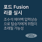 포드 퓨전 에어백 압력상승 관련 모듈 교환 리콜 차량관리 필수앱 마카롱 대상 차량 포드 코리아 차종 제작 일자 Fusion ‘11.02.02.∼’11.05.19. ‘11.05.24.∼’11.12.02. 리콜 내용 에어백 압력상승으로 인한 사고 가능성 조수석 에어백 전개 시 과도한 압력상승으로 파편이 튀어 탑승자에게 위험을 초래할 수 있는 가능성에 따른 리콜 시정방법 대상 차량 확인 후, 해당 조수석 에어백 모듈 교환 대상확인 1600-6003 리콜 개시일2019년 01월 25일 ~ 출처www.car.go.kr (자동차 리콜센터) 이제 '내 차 관리' 좀 해볼까? 친구에게 공유하기