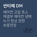 싼타페 DM 에어컨 고압 호스 냉매 누기 관련 보증연장 차량관리 필수앱 마카롱 대상 차량 기아 자동차 차종 제작 일자 싼타페 DM ∼ 16. 6. 22 이전 생산차량 발생 현상 일부 차량, 에어컨 고압 호스 체결부의 미세 틈새로 에어컨 가스가 누기되어 에어컨이 시원해지지 않는 현상이 발생되어 보증연장 실시 보증기간 연장 내용 3년 / 6만km → 5년 / 10만 km 에어컨 고압 호스 점검 후 에어컨 냉매 누기시 교환 문의 080-600-6000 발표일2018년 6월 14일 출처현대자동차 공지사항 이제 '내 차 관리' 좀 해볼까? 친구에게 공유하기